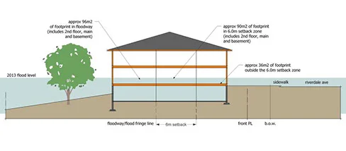 Conceptual drawings of 1334 Riverdale Ave., Calgary, compared to 2013 flood levels.